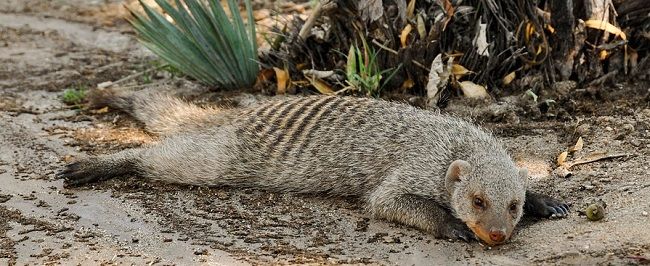 フイリマングースは体重約1kgと全体的に小さい割に、体長は25cmと胴長なマングースです。体色は黒褐色・黄土色で、肛門付近に臭腺がありイタチなどと同じく悪臭を放つことがあります。ですが、イタチと違い穴を掘ったりするという行動は見られないうえ、木を登るのも苦手であり、水が苦手なため泳ぐこともありません。