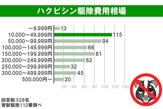 では実際にどれくらいの費用がかかるのか、弊社運営サイトの「害獣駆除110番」で集計した528件のハクビシン駆除・予防の施工データをもとに、見ていきましょう。
