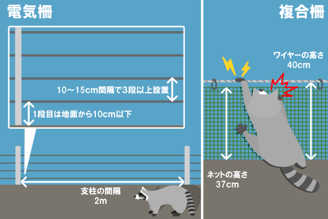 他にも、電気柵と合わせて金網やネットを設置する複合柵も効果的です。