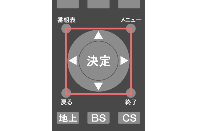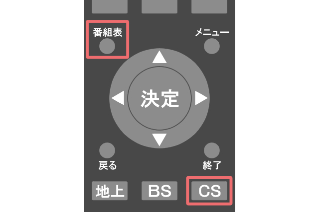 ステップ1:テレビのリモコンを、「CS」→「番組表」の順で押し、番組表画面を表示する。