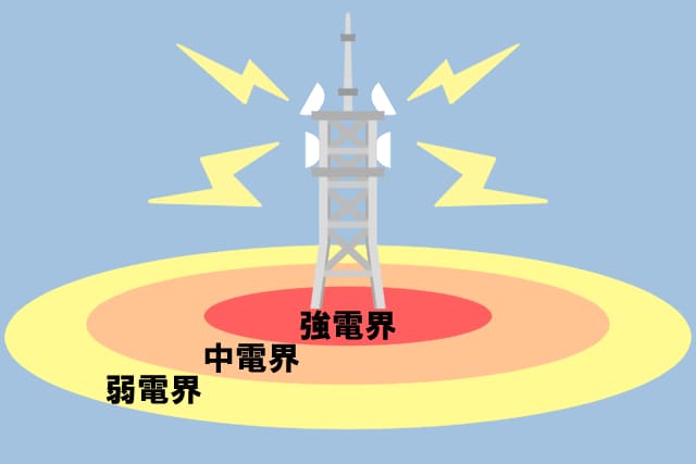 電波の強い地域を強電界地域、反対に弱い地域を弱電界地域と呼び、アンテナを付ける目安になります。