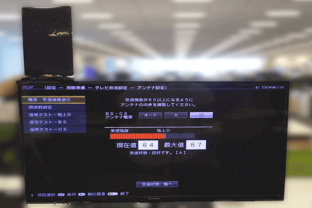 アンテナレベルとは放送電波をテレビがどれだけ受け取っているか?を示した値のことです。