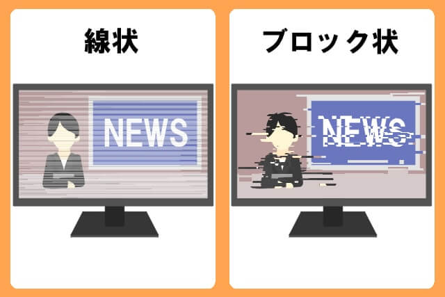 テレビの映りが悪くなるとノイズが走る、エラーコードが出る症状が画面に現れます。