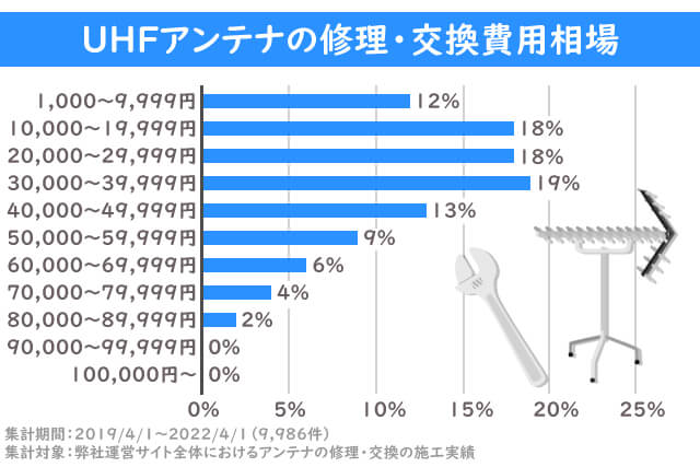 弊社の加盟店では地デジアンテナの修理・交換は平均約3.6万円(36,496円)でおこなっています。