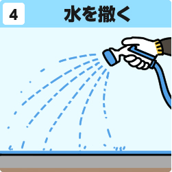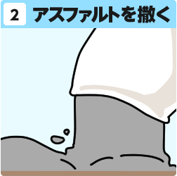 アスファルト材を撒く。この時点ではぬらさないように注意する。