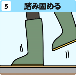 力を入れて踏み固める。シートの上から踏むことで力が均等にかかりやすくなる。