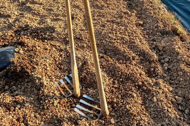 すき込みは地面を耕し、地中と地表の土を入れ替える作業です。すき込みをおこなうことで、地中の微生物が活性化し、有機物の分解にもつながります。すき込みには耕運機や、プラウという農具を使う場合もありますが、小さな畑であれば鍬(すき)を使って手作業でおこなってもよいでしょう。