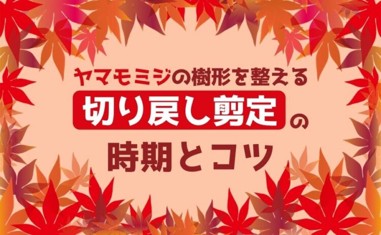 ヤマモミジは、基本的に冬の休眠期である11~2月の間に切り戻し剪定をおこないます。切り戻し剪定とは、樹形を小さくする目的があるほか、木の生長を促す効果のある剪定方法のことをいいます。ヤマモミジの場合、深い位置から切り戻しをおこなうようにしましょう。