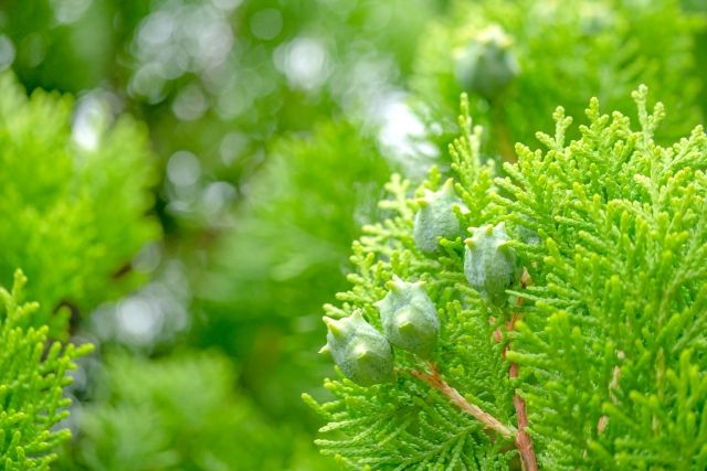 コニファーの魅力はもう1つ、独特の芳香を葉から放つ点が挙げられます。生い茂ったコニファーの中に立つと、まるで森林浴をしているようなすがすがしい香りを感じることができ、このことからコニファーにはアロマテラピー効果があるともいわれています。