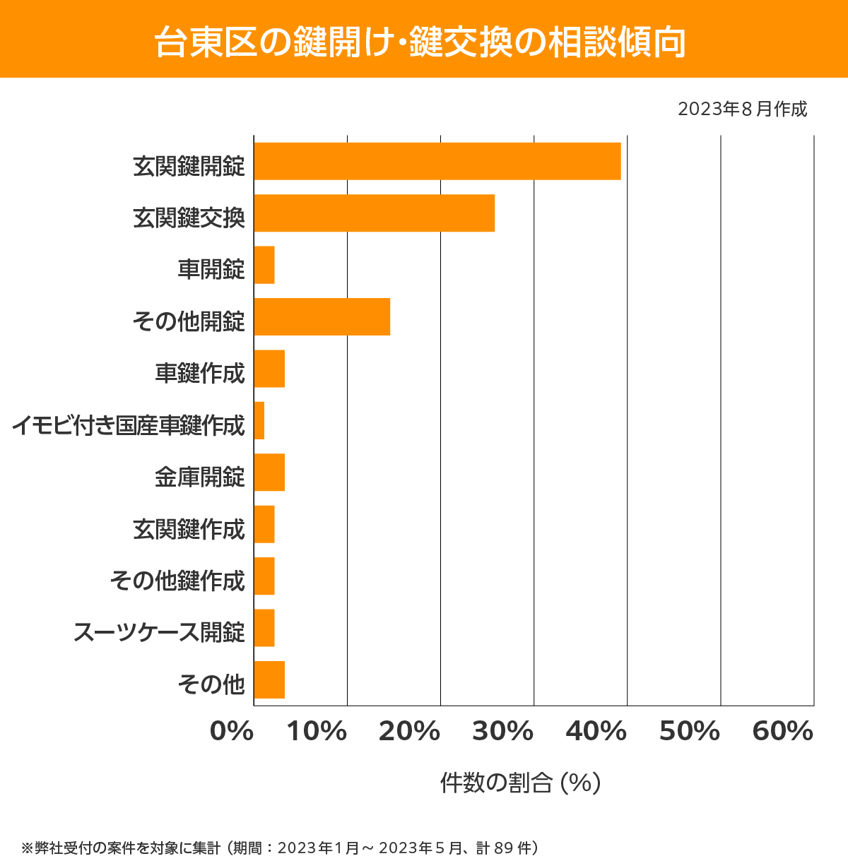 弊社に寄せられた鍵開けの問い合わせデータから、相談件数は夜間や祝日に多いということがわかっていますが、鍵屋によって定休日や営業時間外ですぐに来てもらえない場合があります。
