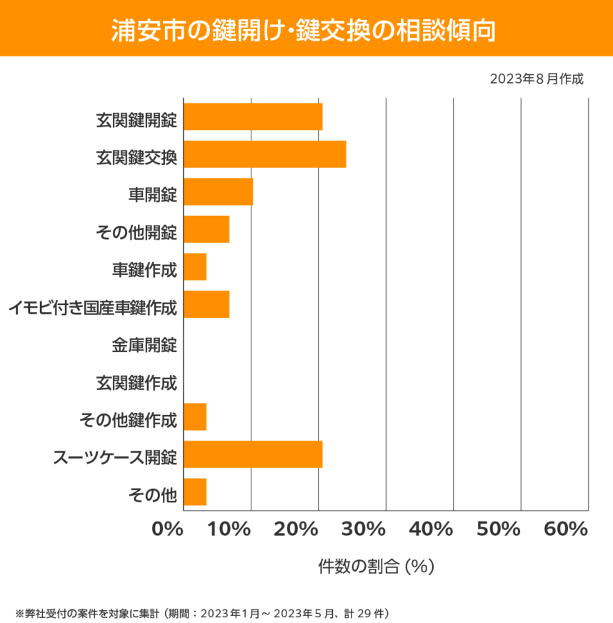 浦安市では、実際はどのような鍵トラブルが多いのでしょうか。