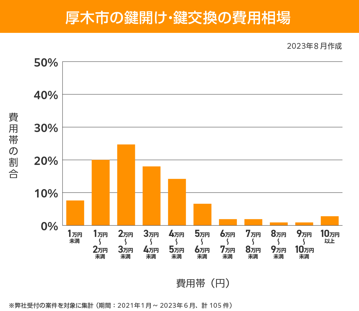 次は厚木市の鍵開け・鍵交換の料金相場についてご紹介します。