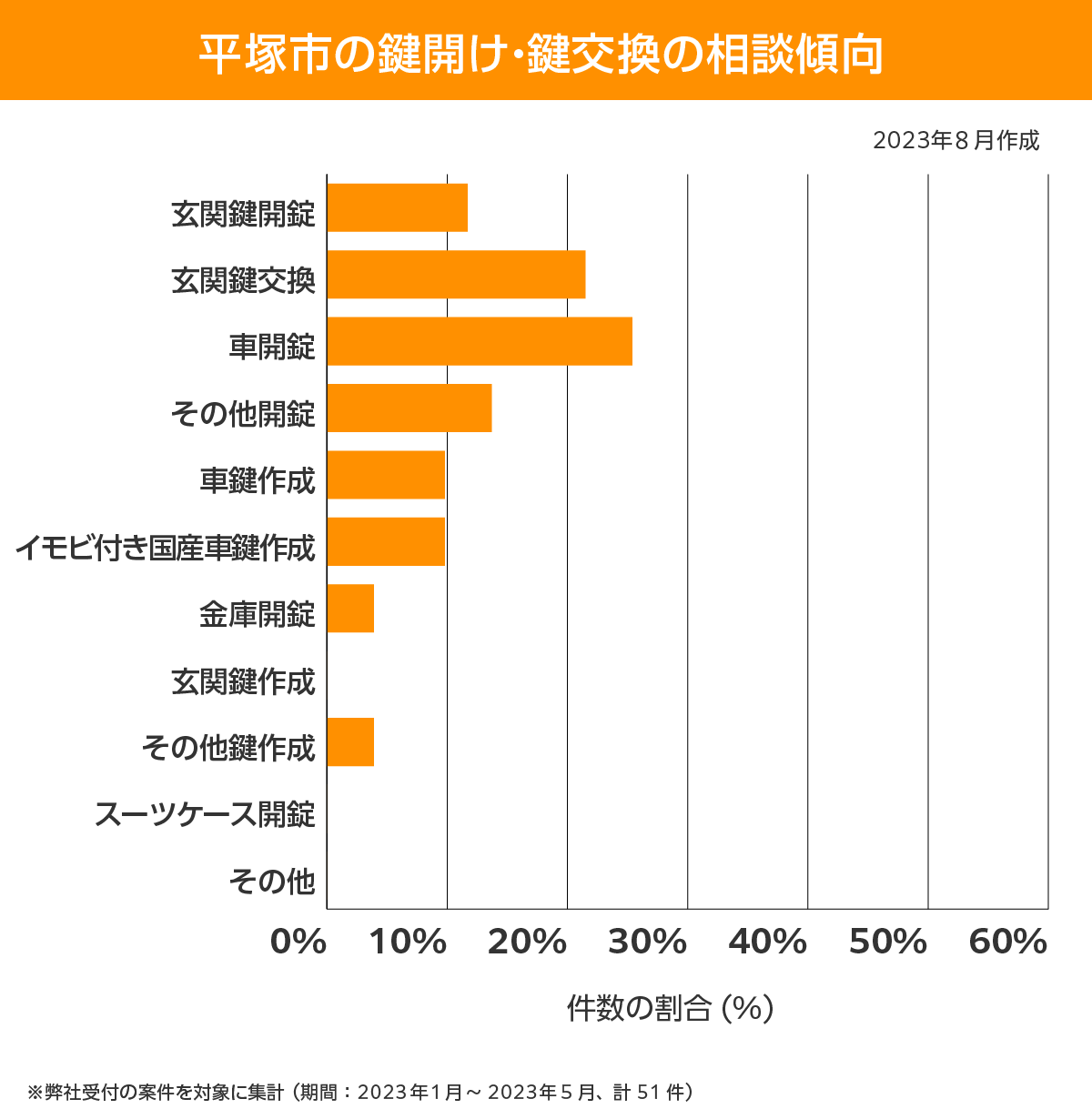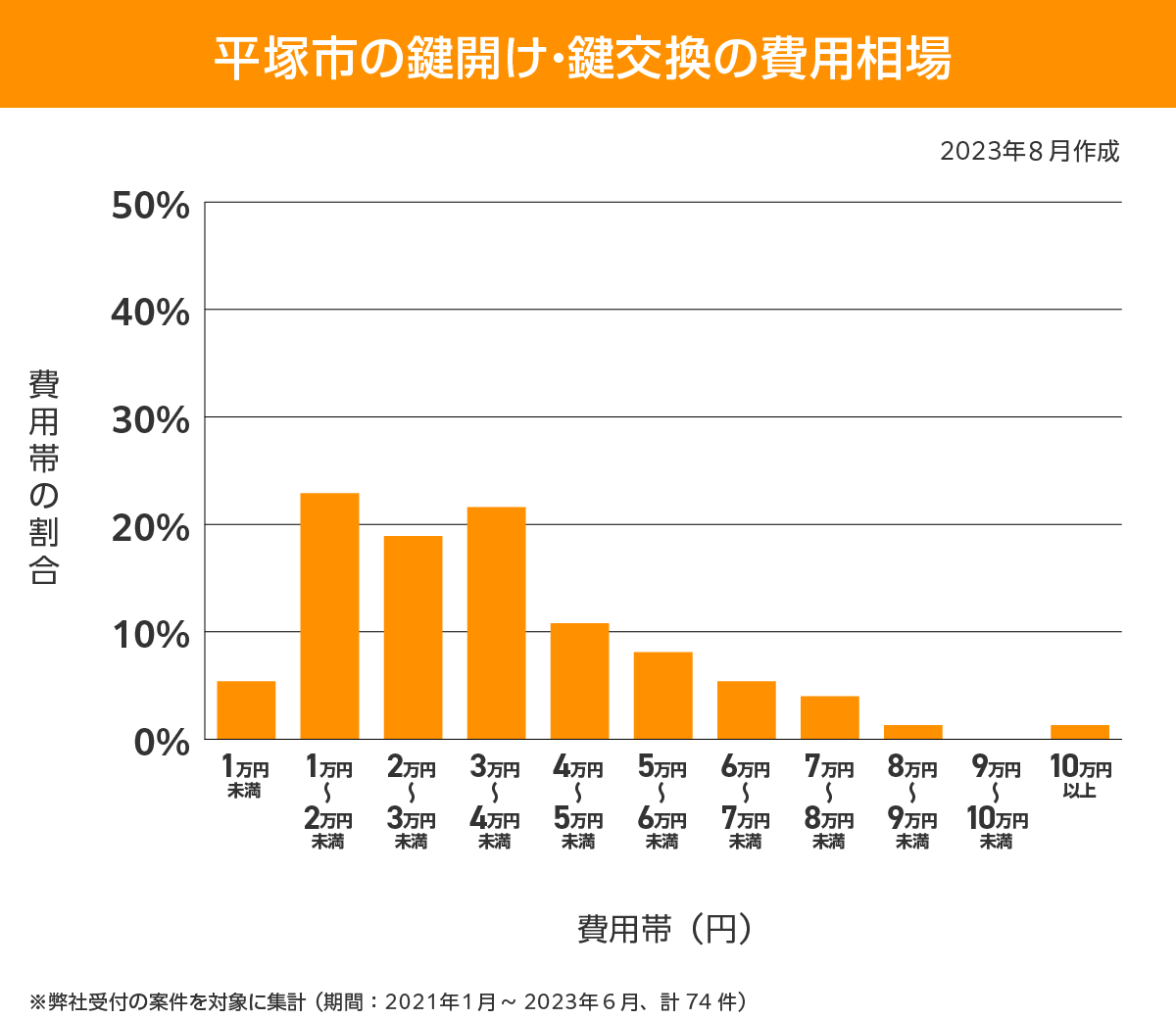 弊社の実績から、平塚市の鍵開け・鍵交換の料金相場を調べましたのでご覧ください。