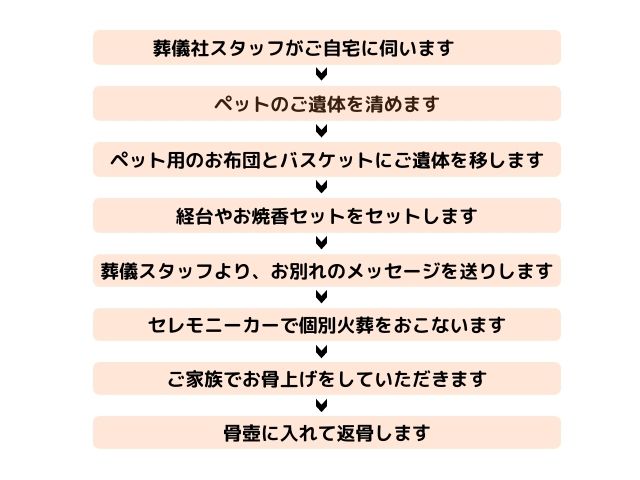 | 火葬方法 | ほかのペットと一緒に火葬 | 自分のペットだけで火葬 | 自分のペットだけで火葬 |