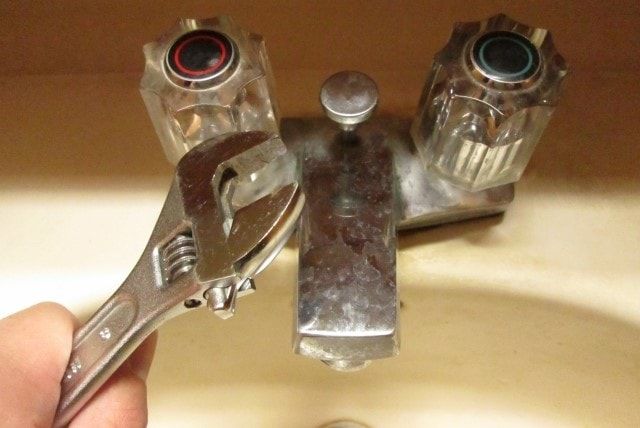 3. ハンドルの下にあるネジをモンキーレンチで外す