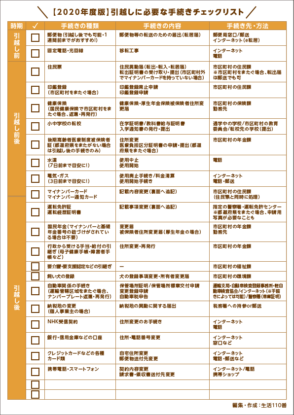 多くの手続きは「引越し前」よりも「引越し後」に集中しています。