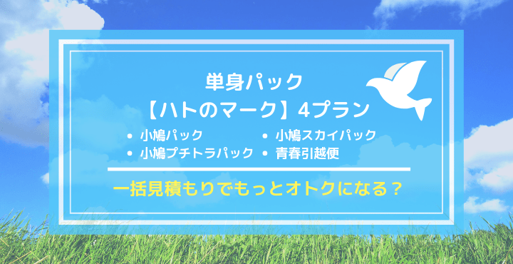 ハトのマークの引越センターの単身パックは小鳩バック、小鳩プチトラパック、小鳩スカイパック、青春引越便の4種類あります。