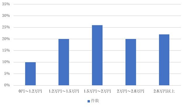 | 0円~1.2万円 | 1.2万円~1.5万円 | 1.5万円~2万円 | 2万円~2.8万円 | 2.8万円以上 |