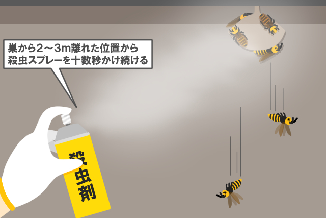 1.巣に殺虫スプレーを十数秒かけ続ける
