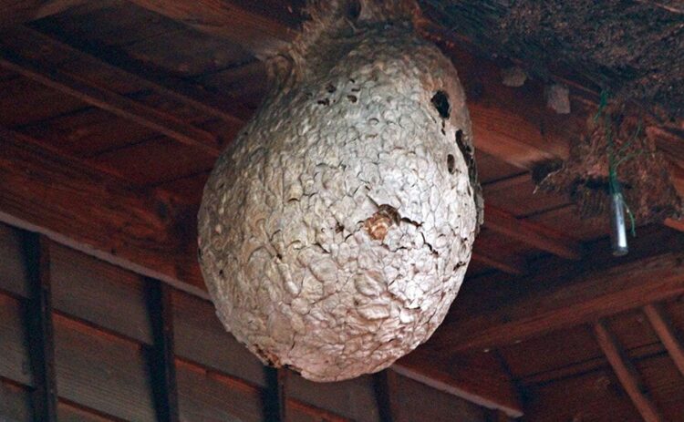 スズメバチの巣の詳しい特徴や見分け方はこちらをご覧ください。