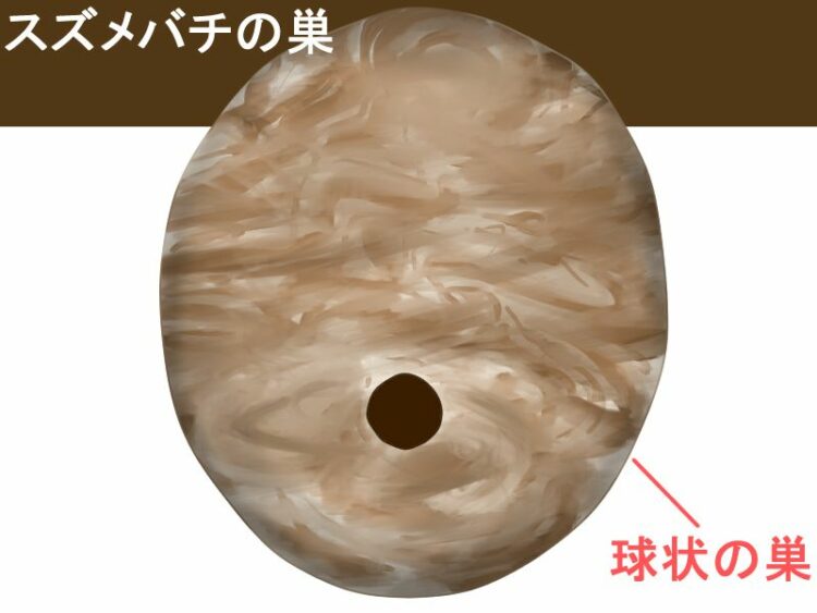 | ヒメスズメバチ | ボールを半分に切ったような形状 (下から巣穴が見える) |