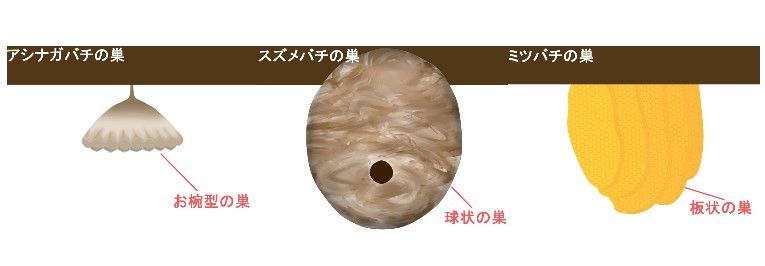 ただし、これら3種の巣は見た目がかなり違いますので一度その差を見比べてみましょう。