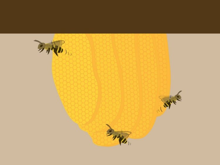 ミツバチの巣は複数の平らな板が垂れ下がるような形