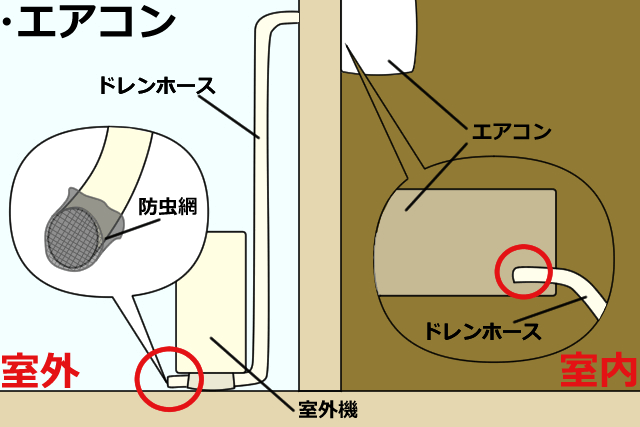 ゴキブリは暗くて狭い場所を好むため、ドレンホースなどの狭い部分から、エアコンに侵入します。