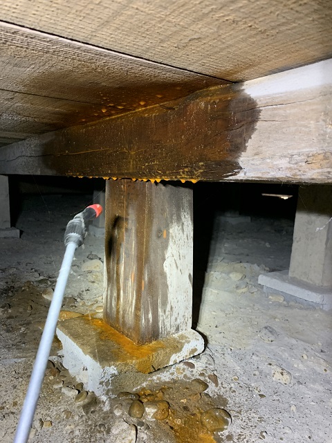 とくに床下は基本的に湿っぽくてシロアリが住み着きやすい場所なので、被害を受けやすい場所ですし、今食われていなくても全体的に薬剤をまいて予防する作業も必要です。