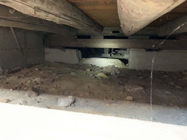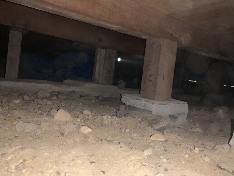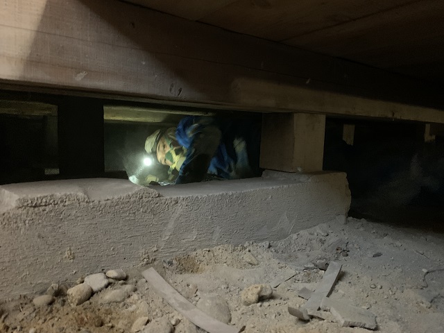 もちろん床下はこのように狭く、昼間でもライトがないと先が見えないほど暗い場所です。