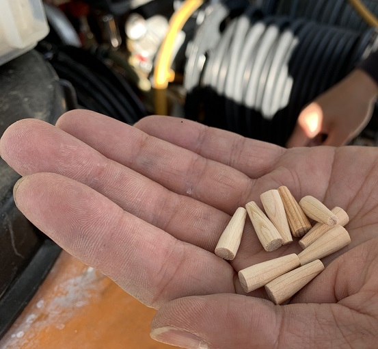実際薬剤はハケなどに付けて塗っていくこともできるのですが、木材一ヶ所ずつ塗っていくと、作業効率がだいぶ悪くなってしまうんですね。