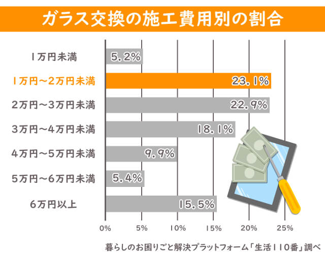 ガラス交換にかかった金額ごとの割合を以下の表にまとめました。
