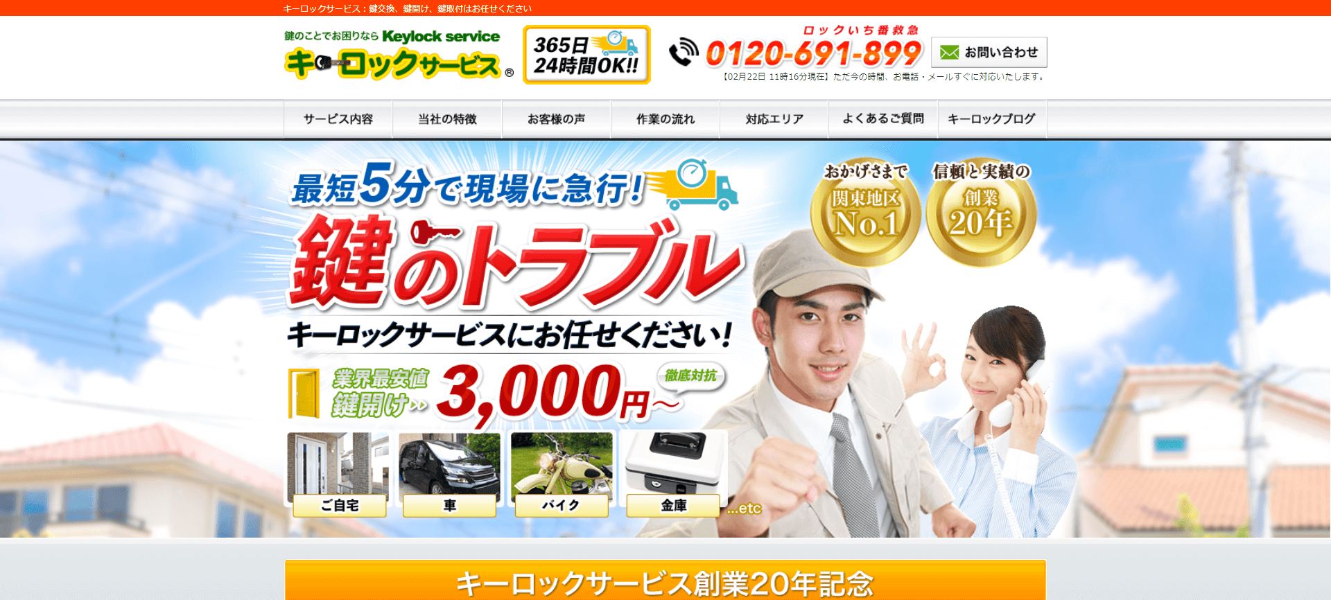 ー | 各種キーごとの詳細な料金表がある | 休日カレンダーが表示されるので確実な営業日に相談ができる | 東京都、埼玉県 | ○ | ✕ | ✕ | ○ | ○ | 4.8点 |