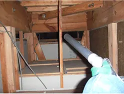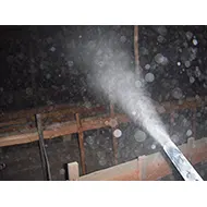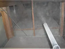 Afterねずみ駆除上記画像は天井裏へ専用の機械で粉剤を散布しているところです。天井裏での生息が多く見られる際にこの処理を行います。ねずみに粉剤を接触させ、グルーミングの際に薬剤を体内に取り込んでもらいます。かなり効果の高い処理方法です。