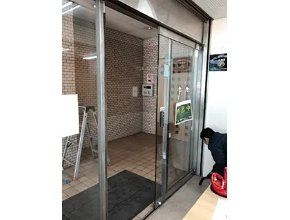 今回は「屋内の扉のないトイレに自動ドアを2台新設したい」とお客様からご依頼をいただきました。施設内の、扉自体ない男女トイレに、衛生面と防犯の観点から自動ドアを設置したいとのことでサッシ枠を組み、自動ドア装置の設置をいたしました。 広い施設でしたので、常時、施主様方が見える所に居ませんので、作業中の他トイレへの誘導、作業しない時間帯の安全性を確保することが重要でした。地面のハツリ作業から始まり、電気工事、サッシ枠を組み、自動ドア装置を設置、地面の補修、タイル貼りで仕上げました作業工程は3日です。 作業中は職人さん達に、安全と施設利用のお客様への配慮を徹底させ、貼紙を複数個所に設置し、周知徹底しました。3日間とおして無事に終えることができてホッとしています。 新設工事、改修工事、修理、メンテナンス、自動ドアに関する事は是非ご相談ください。