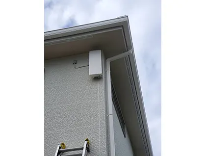 新築戸建てのお客様です。「新居にデザインアンテナを設置してほしい」とのことでした。 屋根上ではなく、外観を損ねない、外壁にぴったりのカラーでデザインアンテナを設置しました。 新築物件ですので、外壁に合わせたカラーを選択し、受信に適した方向、位置を確認の上、設置させていただきました。受信ができなければ何もなりませんので、確実に受信ができるかの確認作業を慎重におこないました。 「アンテナといえば、屋根の上と思っていたので、こんなにシンプルですっきりしているのに驚きました。外壁の雰囲気を損なうことなく、とても満足しています。ありがとうございました」とお礼の言葉をいただきました。 新築物件には外壁の景観を重視して、デザインアンテナを設置することをおすすめします。
