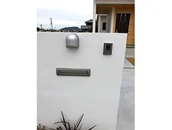 After門柱のインターホン工事を行いました!戸建てにお住まいのお客様から、門柱のインターホン工事を承りました。カメラ付きなので、外の様子が確認できるため便利です。 インターホンの新規設置から交換まで承っています。お気軽にご依頼ください。