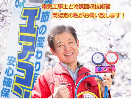 エアコンのエキスパート、電気工事士と認定冷媒取扱技術者がお伺いします。