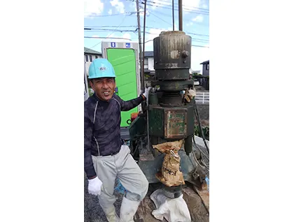 少し不謹慎に思われるかもしれませんが、さく井工事は私にとって楽しい工事でもあります。言うなれば、宝探しのようなものでしょうか。自分の狙い通りに地下水が湧き出てきたときは、まるで石油でも湧いたかのような嬉しさが込み上げます。それはおそらく、施主様も同じなのではないでしょうか。必ず水が湧き出るとは限らないため、多くの施主様は不安を抱えた状態です。しかしいざ水が湧けば、パッと笑顔になるのですね。この喜びを私たちと共に味わいましょう!
