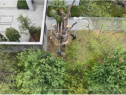 After特殊伐採に対応!背の高い木の伐採ならお任せください。 ロープワークを駆使し木に登り余分な枝葉を処理しました。 特殊伐採作業なら経験豊富な当店へ。