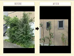 育ちすぎた庭木を素早く・綺麗に剪定いたします。植樹や造園などのご提案もしておりますので、お庭のことでお悩みの方はぜひご相談ください。お見積りは木の高さ・種類をもとに正確に行います。