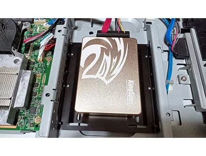 お客様のプライバシー保護のため記載内容が事実と若干異なります。 以前ご利用のお客様から「文字化けしてアイコンやタスクバーの文字が全く分からなくなったので直して欲しい」とSOSです。 文字化けは以前は結構有った症状ですが最近は余り聞きません。出動! PCは一体型の富士通 ESPRIMO WF1/M。Windows 8から10にアップグレードしてあります。 拝見するとアイコンの文字・タスクバーのフローティング文字・エクスプローラーも文字化けしていて使うのが困難です。 辛うじてWindows設定だけが正常表示されてます。 WindowsXPや7の時は何回か文字化けは直した事が有りますがWindows10は初めて見ました。 ググると10の場合の文字化けはWindowsUpdateに失敗すると発生する場合があるそうです。 先ずは簡単なシステムの復元を試すもダメでしたのでWindowsUpdateをかけてやりますがダウンロードとインストールを繰り返します。 セキュリティソフトとファイヤーウォールを止めて再度試すとUpdateがインストールし始めました。 1時間程経過後に無事にUpdate完了。 恐る恐る再起動すると文字化けが直り正常表示されました。 エクスプローラーで各ファイル・フォルダ見ても大丈夫で一安心。 他に何かありますか?とお尋ねすると最近ご家族にHDDをSSDにすると速くなるとお聞きになり交換して欲しいとご希望です。 Amazonで費用が安く良さそうなKING SPECの1TBを注文して届いたら交換となりました。 後日、届いたとのご連絡で本体一式とSSDを持ち帰り換装開始。 本体裏のネジ6本を外し上部は填め込みラッチをスクレーバーで裏蓋を注意深く分離。 スタンド一体の金属カバーもネジ留めを外してやっとHDDとご対面。 コピーマシンでコピーするとインジケーターが一つ赤色点灯します。 これは不良セクタが有る場合でスキップしてコピーしてくれるのですがWindowsが起動出来るのか不安です。 2時間程でコピー完了して逆手順でSSDをPCに戻して起動。 若干カーソルがグルグル回ってましたが無事にデスクトップ画面が立ち上がりました。 お客様にお届けしてファイル類をざっと確認していただきましたがコピー出来て無いとか表示されない物はないようです。 元HDDは有りますので最悪復元出来る可能性も有りますがコピー出来ていて良かったです。 起動も動作も速くなり喜んでいただけました。 ご利用ありがとうございました。