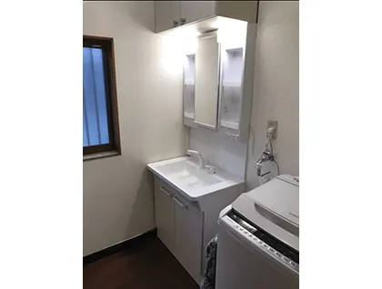 岐阜県各務原市のお客様より、洗面化粧台の蛇口から水漏れしていると言う修理依頼をいただきました。拝見させていただきましたところ、扉を開けた中の底板が濡れてベコベコになっておりました。もう20年以上ご使用されていると言う事だったので、新しく洗面化粧台を取替える事をおすすめさせていただきました。新しい洗面化粧台は、LIXILのオフトで幅750㎜です。 ※掲載の金額は最低基本料金です。作業料金は内容により異なります。