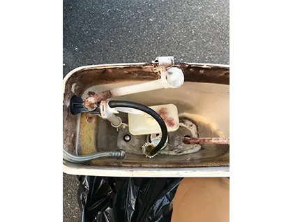 愛知県名古屋市緑区で、トイレの水漏れの修理のご依頼をいただきました。今回は10年以上ご使用されているINAXのタンクです。施工前の写真に載っているボールタップと言う部品が故障していたため、便器にちょろちょろと水漏れをしていました。今回はそれとは別に、タンクの中の断熱材がボロボロになっており、これがタンクの中の動作不良の原因にもなっておりました。この断熱材はタンクの外側の結露を防ぐためにある物で、すごく古いタンク以外は、通常はどのタンクにもあります。古くなるとこの断熱材がタンクから剥がれ、ボールタップの動作を邪魔したり、タンクと断熱材の隙間に水が入り込み、結露の原因にもなります。マンション等で冬場に暖房をしていると床が塗れたりするので、こうなってしまってはタンクの交換や便器の交換が必要となります。 ※掲載の金額は最低基本料金です。作業料金は内容により異なります。