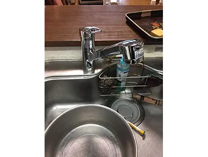 キッチンの蛇口の水が止まらないと言う事で、愛知県安城市よりキッチン蛇口の水漏れの修理依頼をいただきました。見させていただいた蛇口は、すでに10年以上ご使用されていたので、蛇口の交換をおすすめさせていただきました。 以前の蛇口はシャワーの切替はありますが、シャワーホースが引き出させないタイプの蛇口です。新しい蛇口はホースも引出せてもちろんシャワーの切り替えも出来るタイプの蛇口です。 ※掲載の金額は最低基本料金です。作業料金は内容により異なります。