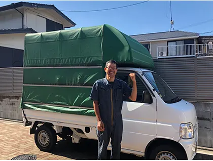 ちなみに一般的な引越しの相場は、約20,000円です。お客様がそれらの料金を見比べていただくと、驚きの安さに一目瞭然かと思います。安さの秘訣は、代表自ら一人で幌付き軽トラックを使った引越しの業者だからです。