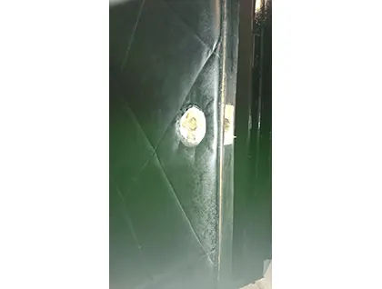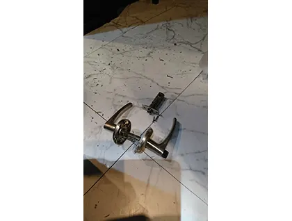 今回のご依頼は、飲食店のドアノブ修理です。 トイレ錠の不具合で鍵がかからないため、修理か交換をご希望されていました。 ドアノブ(レバーハンドル)がグラグラの状態でしっかりと鍵をかけられない状態。 ドアのビス穴もボコボコで修理は不可能な状況でした。 新規にドアを加工して、新たにトイレ錠を取り付け施工させて頂きました。 表のドアにゴム状の装飾が施工されていて取り付けに少し苦労しましたが、無事に作業完了です。 「しっかり取り付けされたので、本日このまま営業出来ます!」と喜ばれた様子でした。
