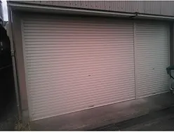 施主様は古くなって錆が酷いので取り替えたいとの事でした。 躯体が鉄骨でしたので、既存のシャッターを外すのに手こずりましたが、無事完了しました。 Hはそれほどでも無かったのですが、Wが5m以上ありましたので1人ではキツかったです。 板金との絡みを心配していましたが、上手く納める事が出来ました。