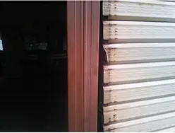 風で飛んだシャッターの取替だったのですが、他のシャッターと色を合わせるために特注色となりました。 文化シャッターの場合は通常はホワイト・ベージュ・グレーの3色からお選びいただけます。