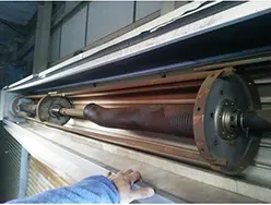 手動親子シャッター修理工事文化シャッター製の手動親子シャッターですが、天井納まりのシャッターで、修理をするには天井を外す必要がありましたし、特殊な取り付け方がしてありました。 ガイドレールが外巻き仕様で付いていますが、本体は内巻き仕様で付いていました。 本来ならばブラケットと飲み込み口が合わないはずですが、加工して取り付けてありました。 40年前のシャッターでスラットやシャフトを丸ごと交換する事になりましたが、無事に終わって良かったです。